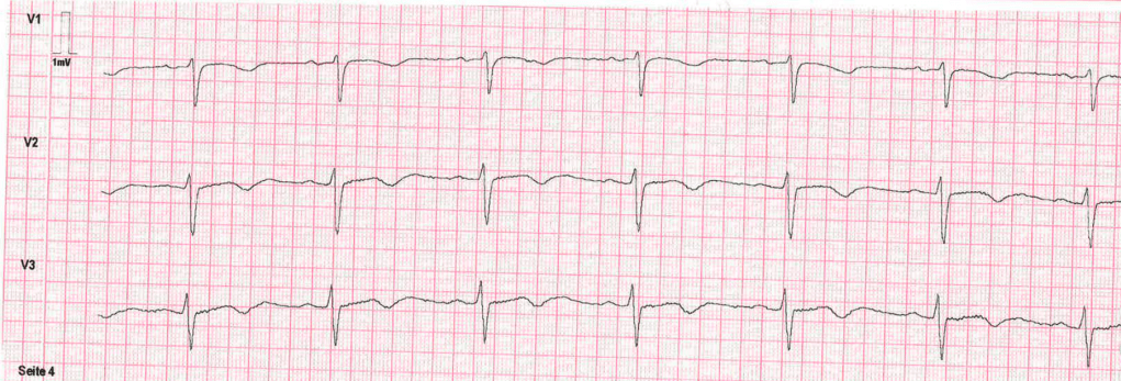 Also im EKG seh ich ein Wellens Syndrom, also gehört die Dame in ein Katetherlabor. Die Schmerzlokalisation spricht aber eher für die RCA als die LAD. Was eine ACS therapie bei schwangeren angeht bin ich allerdings überfragt…