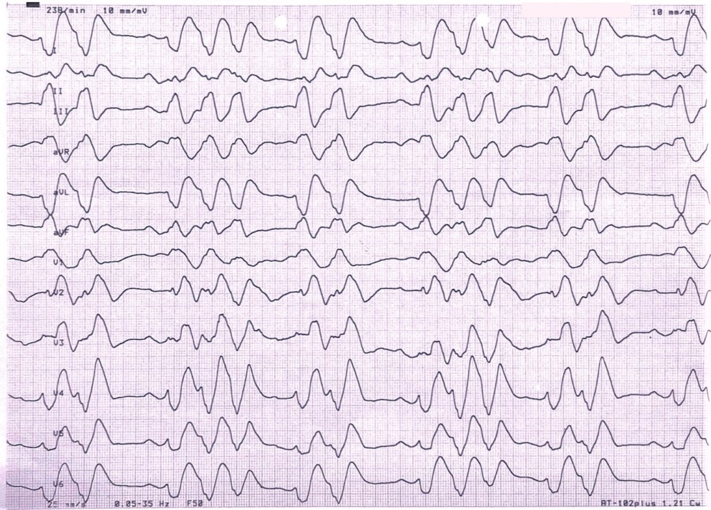 Während einer bradykarden Episode konnte noch dieses EKG-Bild eingefangen werden: