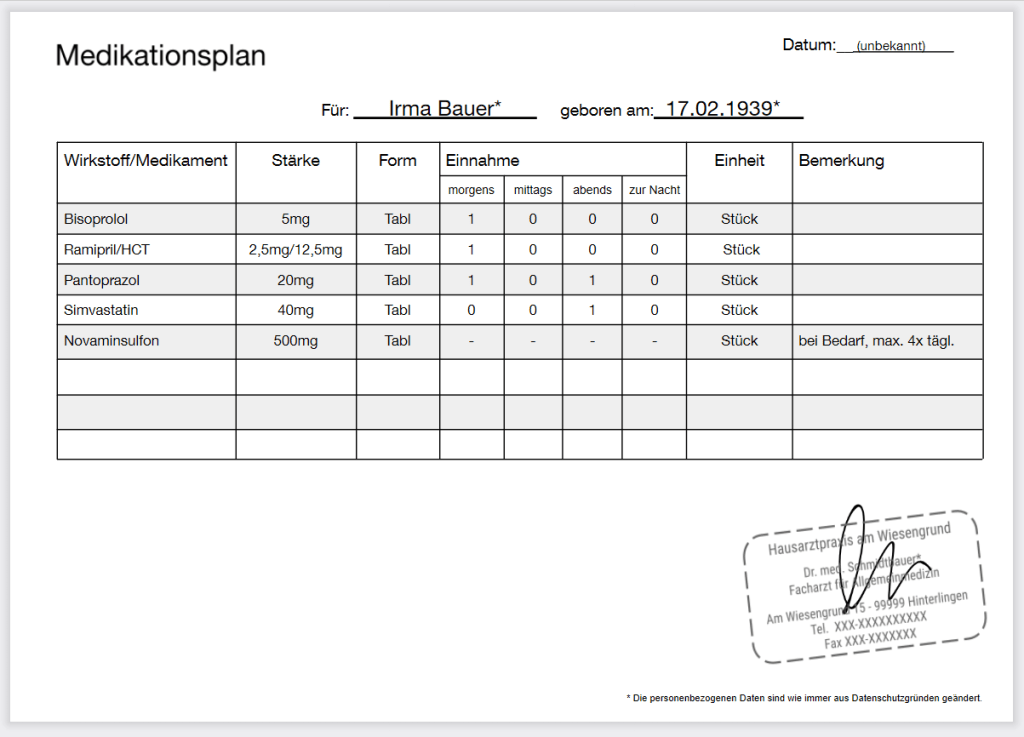 • Die Pflegerin hat inzwischen den Medikamentenplan organisiert: