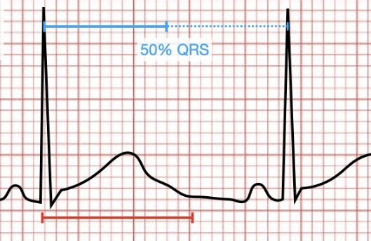 Faustregel: Beträgt die QT-Zeit > 50% des RR-Intervalls, ist sie eindeutig zu lang.