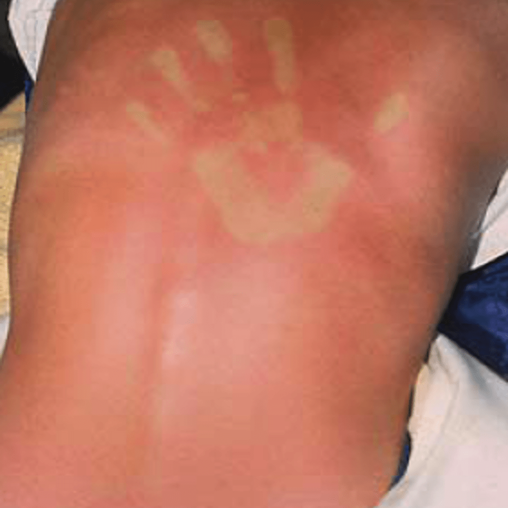 ➜ Hautrötung kann gerne mal als unauffälliger leichter Sonnenbrand übersehen werden.