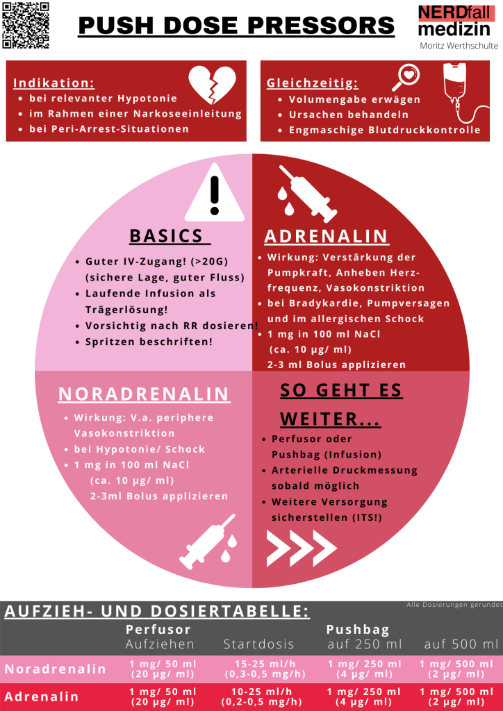 Update 2024: Kompakte Informationen zur Push Dose Pressors und Katecholaminen für die Notfalltherapie inkl. Perfusortabellen, Checklisten, Tipps, ständig aktualisierte Quellen und vieles mehr gibt es jetzt kostenlos auf notfallguru.de!
