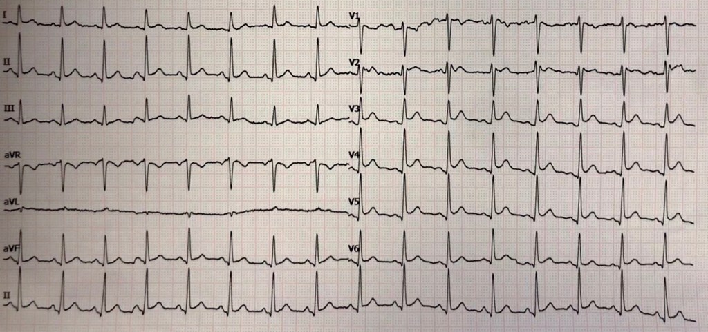 Diese Woche gibt es mal ein EKG-Beispiel einer Patientin, der sich mit Abgeschlagenheit und thorakalen Beschwerden vorgestellt hat..