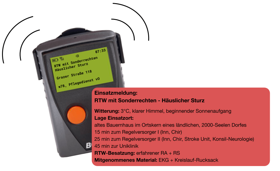 An einem knackig-kalten aber freundlichen Dienstagmorgen, schallt die Sirene eines Rettungswagens durch das beschauliche Hinterlingen. Die Besatzung macht ihr Ziel in einer engen Kurve der Hauptstraße aus. Nach kurzer Überlegung wird das Fahrzeug 20m weiter, in einer Hofeinfahrt abgestellt. Eine Dame des Pflegedienstes öffnet die Tür und führt die beiden Rettungsdienstler, über eine unheimlich steile und sehr schmale Treppe, hinauf in den 1. Stock…