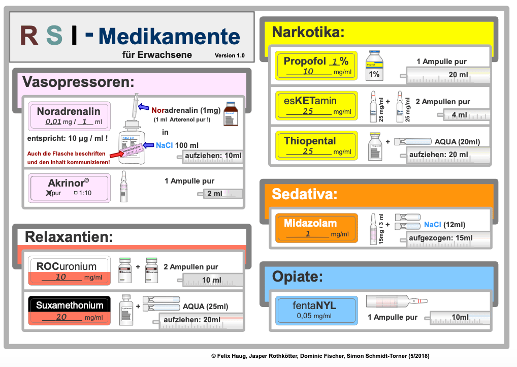 Auch nicht minder genial sind die RSI-Checklisten und Aufziehhilfe für Narkosemedikation – um Fehler beim Ablauf und bei der Verdünnung verschiedener Medikamente zu verhindern.